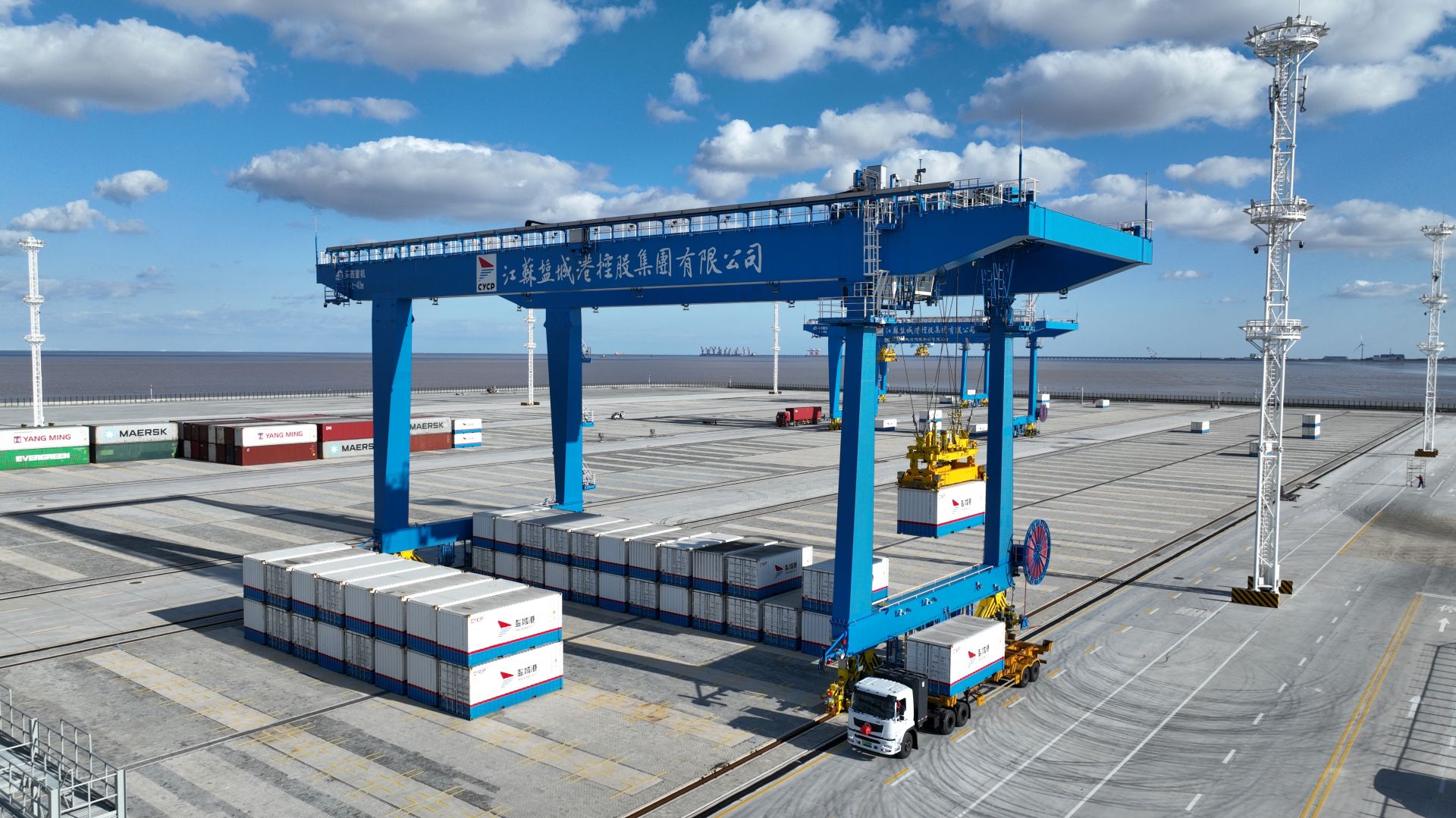 鹽城港自動化集裝箱堆場項目由江蘇鹽城港智慧港口有限公司投資建設,總投資4.5億元,綜合運用5G、自動化控制、北斗定位、數字孿生、智能一體化TOS(集裝箱操作系統(tǒng))等先進技術,進行數字化、智能化、多維度融合,實現(xiàn)設備遠程控制、全過程設備調度一體化、生產作業(yè)現(xiàn)場無人化,年周轉集裝箱達100萬標箱。滿負荷生產運營后,預計可實現(xiàn)年營業(yè)收入1.4億元。