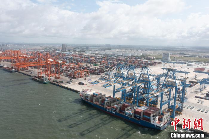 圖為航拍廣西北部灣港欽州自動(dòng)化集裝箱碼頭。王偉臣 攝