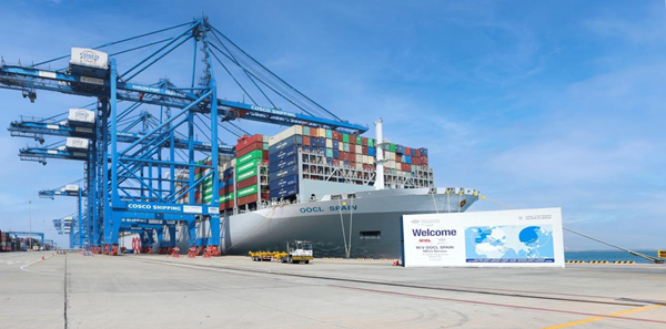 人民網迪拜5月31日電 (記者管克江)中國制造的全球最大級別集裝箱船“東方西班牙”輪5月30日首航停靠中遠海運港口阿布扎比碼頭。