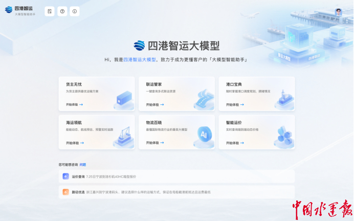 針對物流行業(yè)存在的數(shù)據(jù)孤島、響應(yīng)遲緩、協(xié)同效率低等痛點,“四港智運”大模型推出貨主無憂、智能運價、海運領(lǐng)航、聯(lián)運管家、港口寶典、物流百曉等六大模塊,分別支持智能運輸方案生成、動態(tài)報價、船舶追蹤預(yù)警、多式聯(lián)運調(diào)度、集卡路徑優(yōu)化及行業(yè)智能問答等功能。