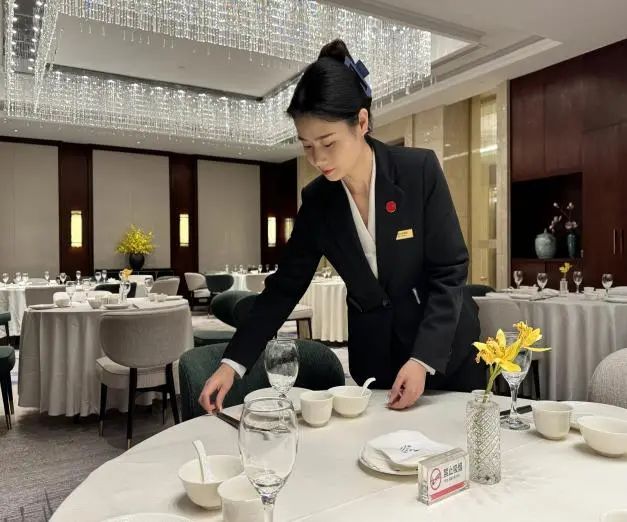在鹽城港半島溫泉酒店,總能看到一個身影穿梭在中餐廳的各個角落。她時而彎腰檢查餐具擺放的角度,時而蹲下整理桌布的褶皺,每一個細節都逃不過她專注的目光。她就是張曉芳,一個用三年時間從普通服務員成長為獨當一面的中餐廳副經理的“95后”姑娘。