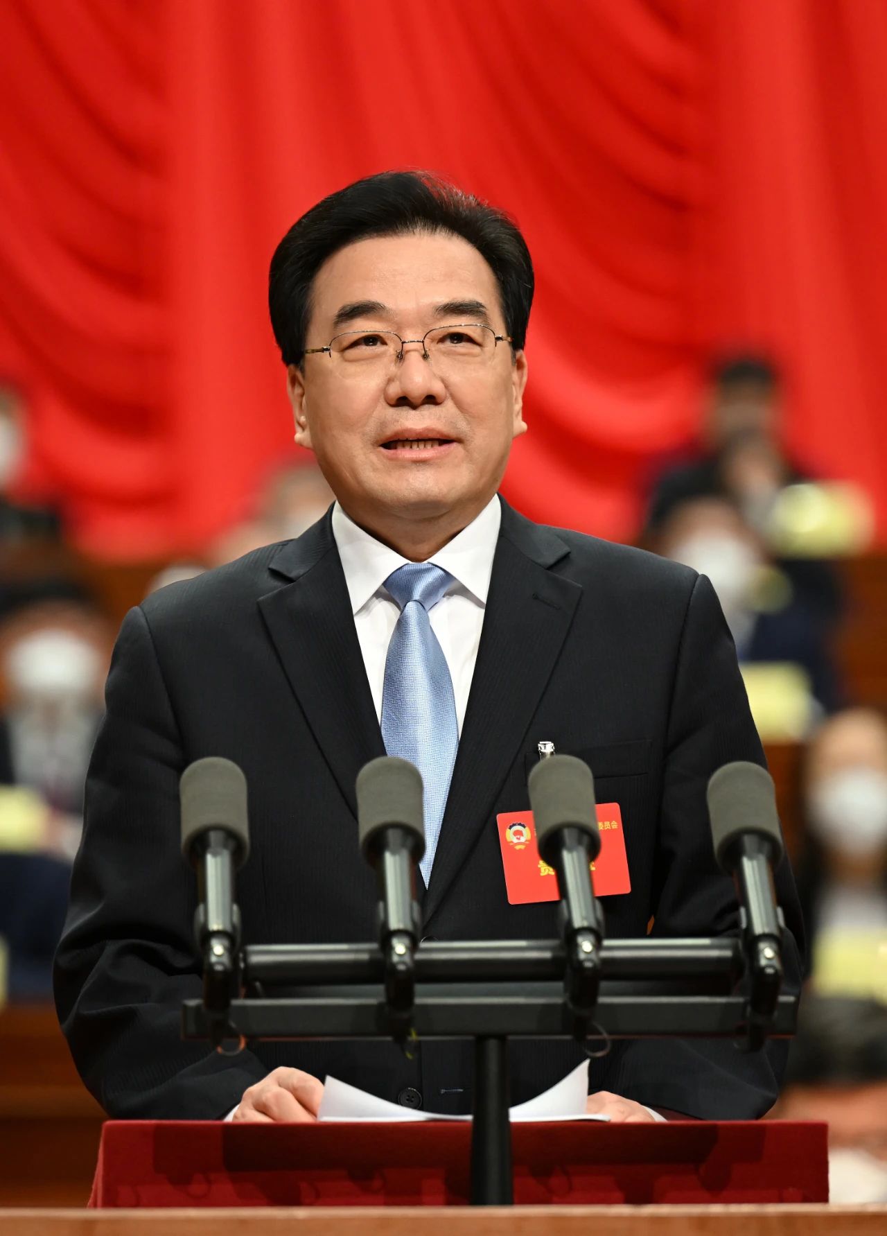 上午9時(shí)30分,會議開幕。全體委員起立,唱中華人民共和國國歌。