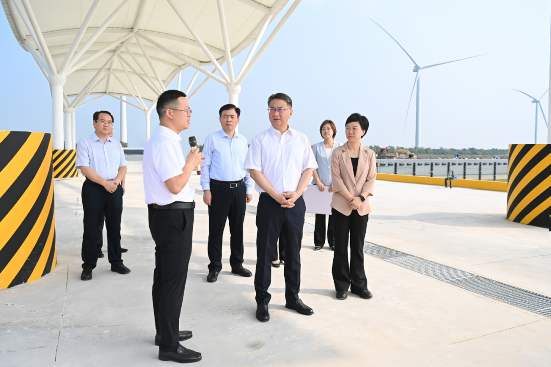 周斌一行首先調(diào)研了我市推進(jìn)海洋經(jīng)濟(jì)高質(zhì)量發(fā)展的項目現(xiàn)場。黃沙港國家中心漁港二期項目建設(shè)現(xiàn)場機(jī)器轟鳴,施工正酣。周斌了解項目建設(shè)進(jìn)展,要求強(qiáng)化與行業(yè)龍頭企業(yè)合作,加快工程進(jìn)度,深耕海洋牧場,做優(yōu)配套服務(wù),加大宣傳推介力度,不斷提升漁港核心競爭力。在射陽縣沿海治安防控中心,周斌聽取工作介紹,叮囑要強(qiáng)化使命擔(dān)當(dāng),運用科技手段,進(jìn)一步加強(qiáng)邊海空防能力建設(shè),為海洋經(jīng)濟(jì)高質(zhì)量發(fā)展保駕護(hù)航。周斌來到中國質(zhì)量認(rèn)證中心射陽分公司,詢問業(yè)務(wù)開展情況,要求公司發(fā)揮好資源優(yōu)勢、品牌價值、科研條件等作用,推動更多認(rèn)證標(biāo)準(zhǔn)與國際接軌,持續(xù)放大鹽城綠色發(fā)展優(yōu)勢。