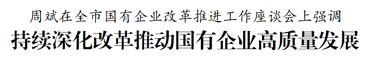 周斌強調,今年是國企改革深化提升行動的決勝之年,要堅持深化改革不停步,堅持問題導向,緊盯薄弱環節,精準發力、持續用力,推動國資國企改革發展取得新進展。明晰功能定位,聚焦高質量發展主題,做好勇挑大梁、服務民生、擴大利潤等工作,在增強國企核心競爭力上取得新突破。優化國資布局,做好資源整合,加快新興產業布局,加強存量資產盤活,在增強國企產業引領力上取得新突破。健全治理體系,提升企業市場化經營、科技創新、現代治理水平,在增強國企發展新活力上取得新突破。堅持底線思維,嚴防債務風險、內部風險、安全風險,在增強國企抗風險能力上取得新突破。